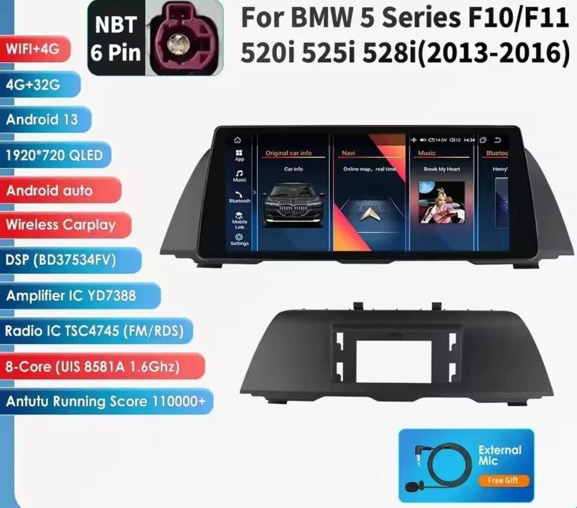 BMW - 5 serie F10/F11 - CIC & NBT - 10.25 inch - 2011 T/M 2017