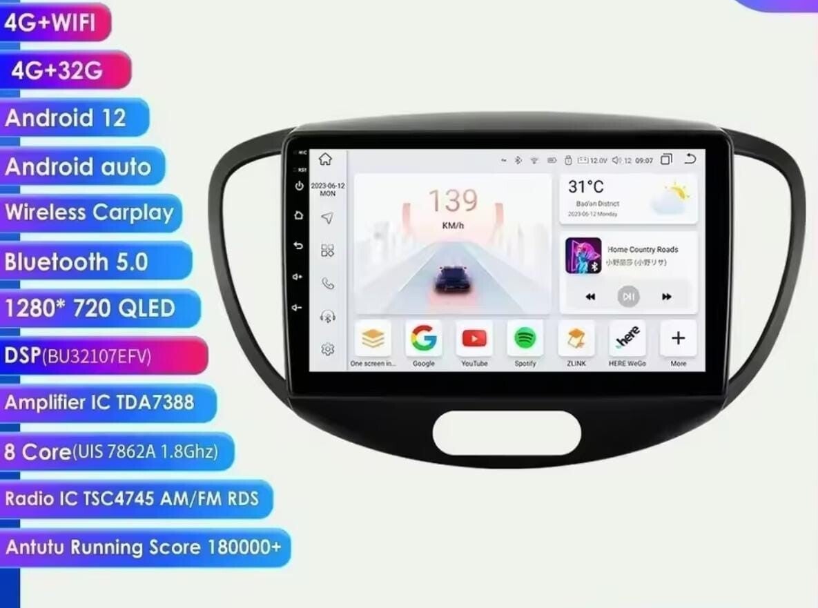 Hyundai i10 - carplay radio scherm - 9 inch - 2007 t/m 2013