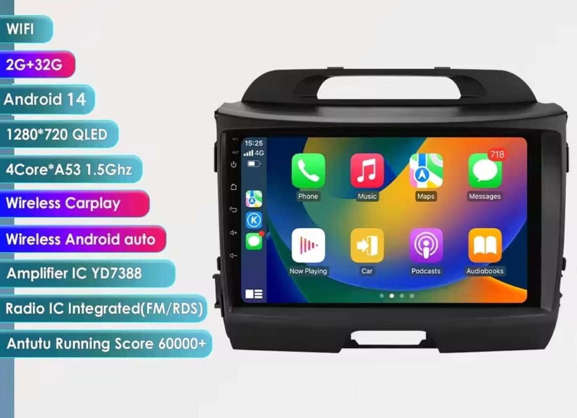 Kia Sportage - carplay radio scherm - 9 inch - 2010 t/m 2016