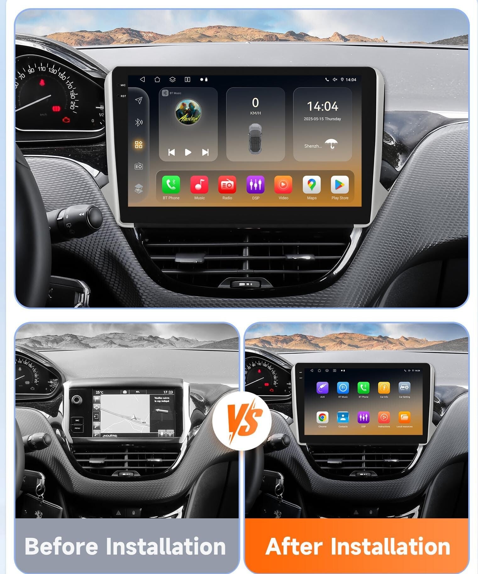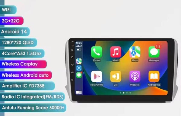 Peugeot - 208 / 2008 - carplay radio scherm - 10 Inch - 2014 t/m 2018