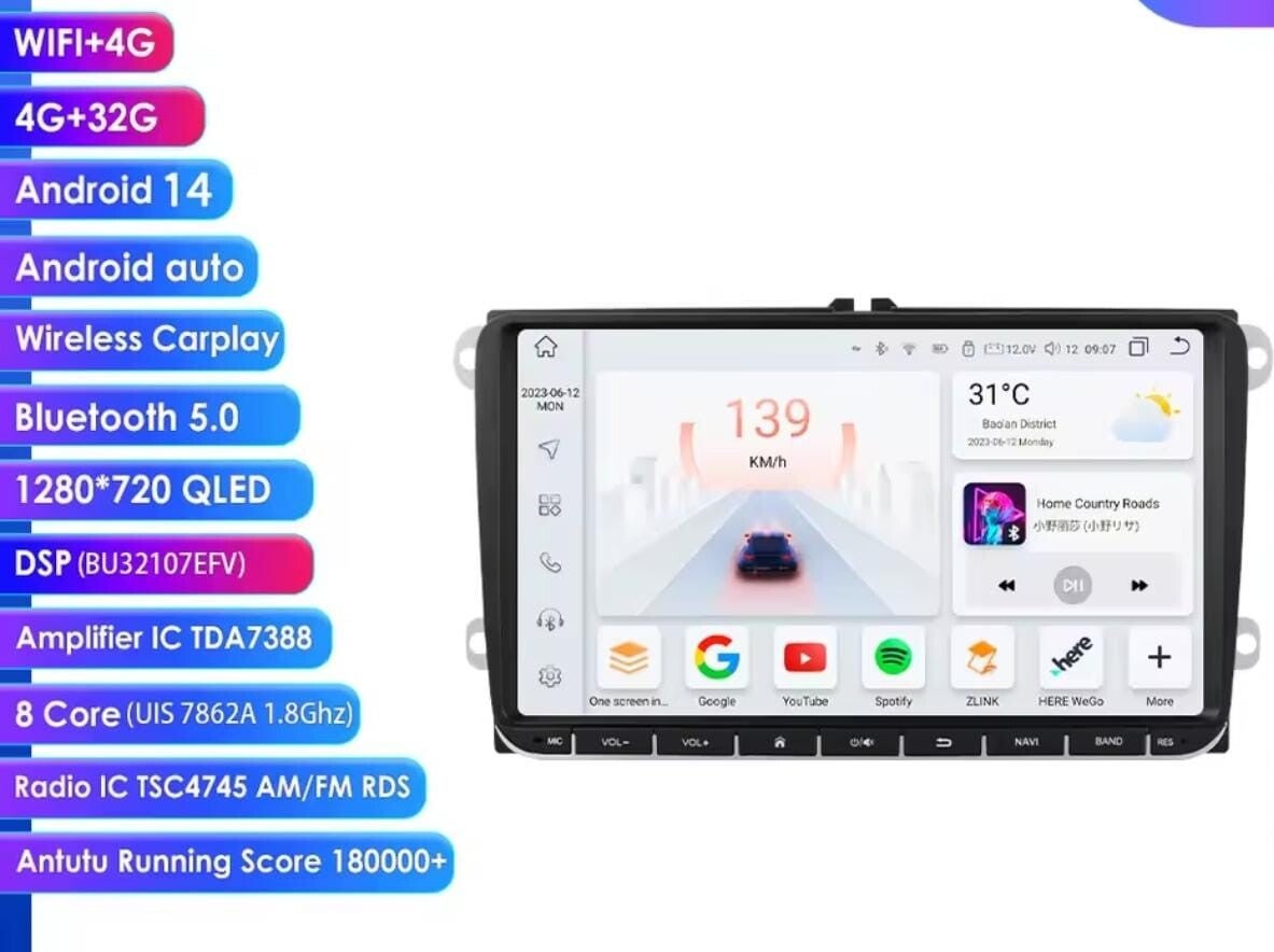 - 4 core houdt in dat het scherm beschikt over een 4 kern processor. Standaard in gebruik. Ideaal voor als u een scherm zoekt voor enkel de basis behoeftes te kunnen uitoefenen zoals apple carplay, Android Auto, Navigatie, FM radio, Youtube etc.